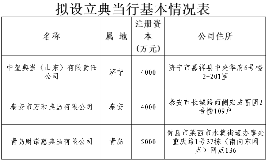 3家典當(dāng)行設(shè)立申請審批情況公示