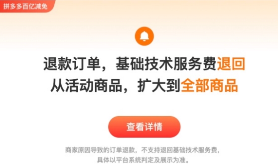 ▲拼多多升級技術服務費退返權益,退返范圍從活動商品擴大至全部商品。